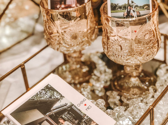 A: 婚宴前兩週除了要交給V team婚紗相框、相簿、謝卡…等婚紗店提供的物品外,也可以將對您們有意義且適合納入佈置的物品交給我們一起佈置。